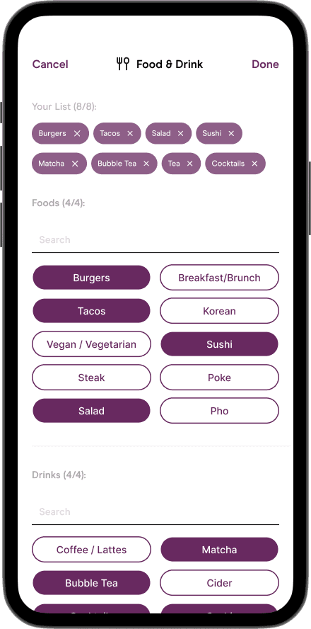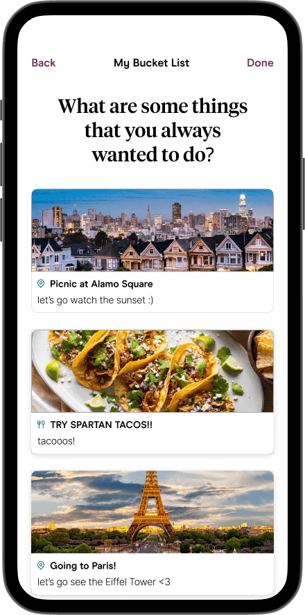 Bond over shared passions & activities to make planning your next date easier.